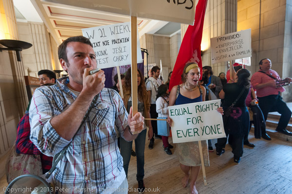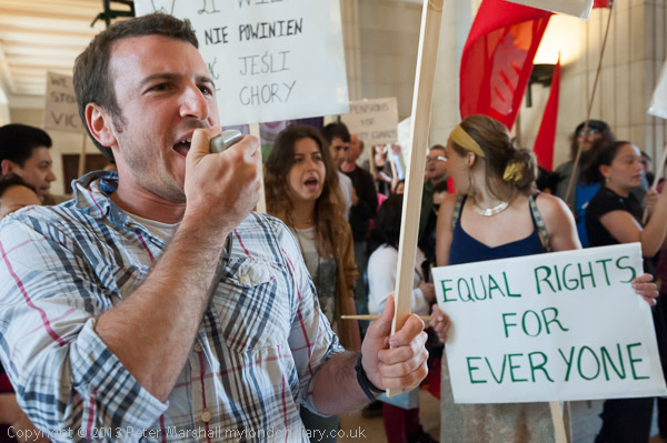 There was a placard in Polish specially for the Polish woman who was on duty watching the protest