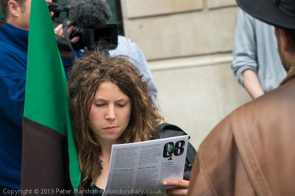 Reading the leaflet about " the offices of some of the most powerful and greedy " in London