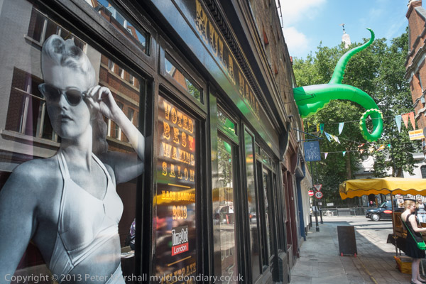 I took a quick walk along Whitecross St to look at the street party there on my way to Clerkenwell. It seems only a few years ago that this was a very run-down working class area of London, where I would sometimes go for a very cheap meal when I was out. Now many of the old shops are galleries and there are trendy bars.