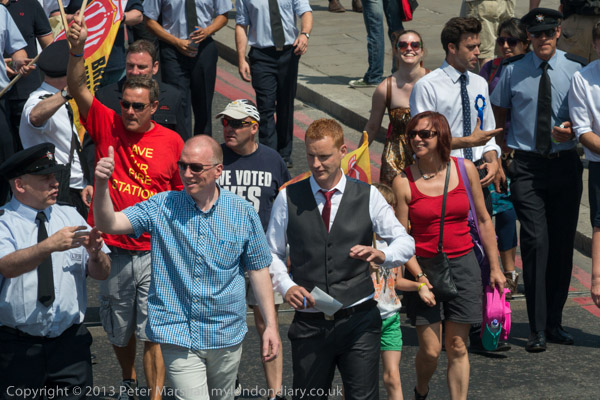 I'd gone up onto the top of the fire engine not realising I would not be able to get down until the march ended
