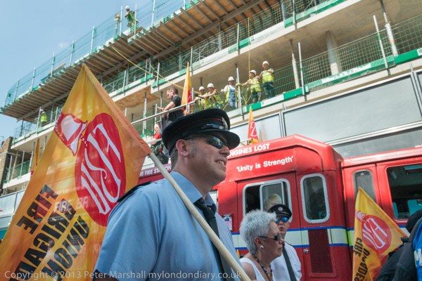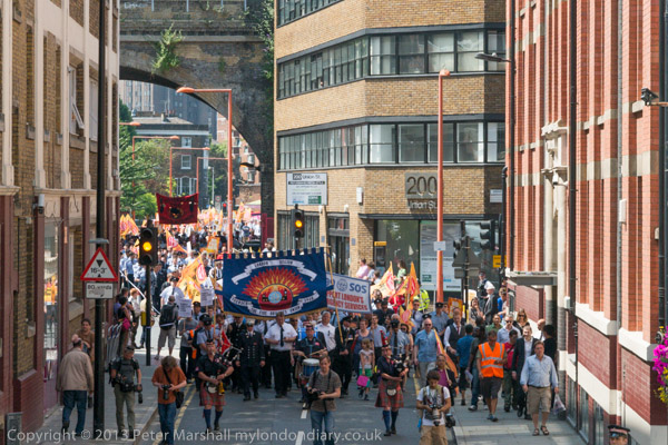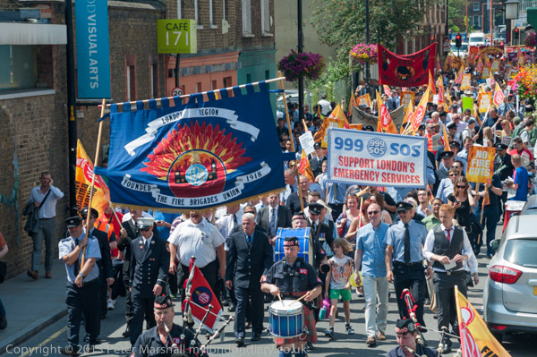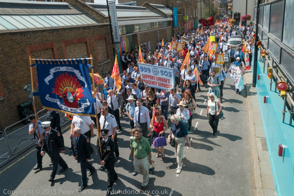 The march went by a roiundabout route to the Fire Brigade HQ where there was to be a meeting over the cuts