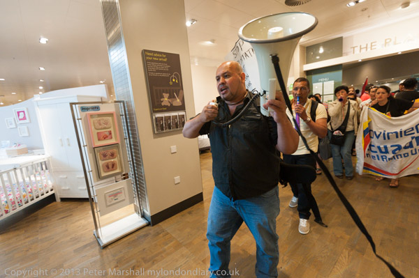 The protest took the John Lewis staff and customers by surprise, and the noise made everyone stop and watch