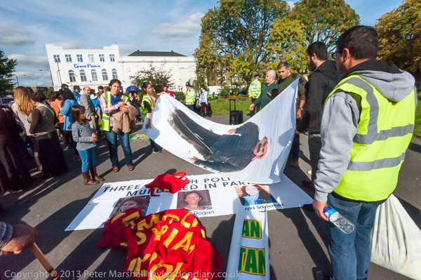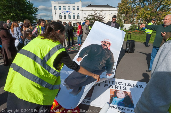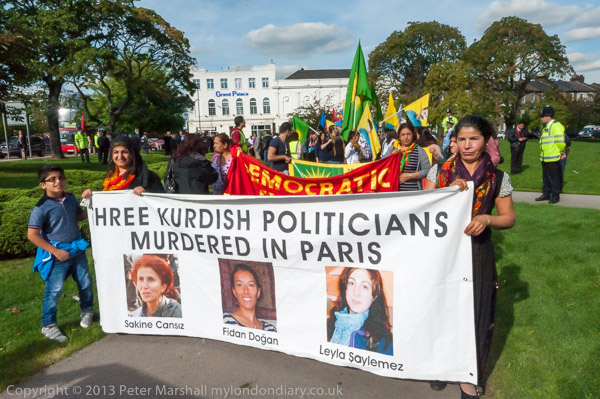 The banner with pictures of 'Three Kurdish Politicians Murdered in Paris' - three women activists shot in the PKK offices