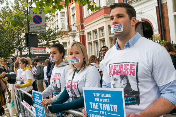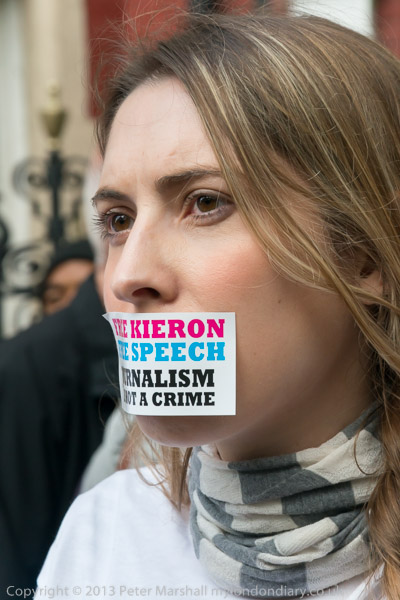 'Keep telling the world the truth: I'm a Journalist - I was doing my job that is all - Kieron Bryan' was the quote on a poster