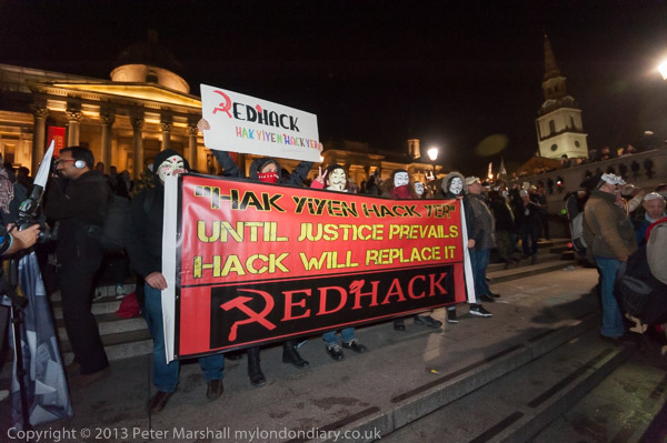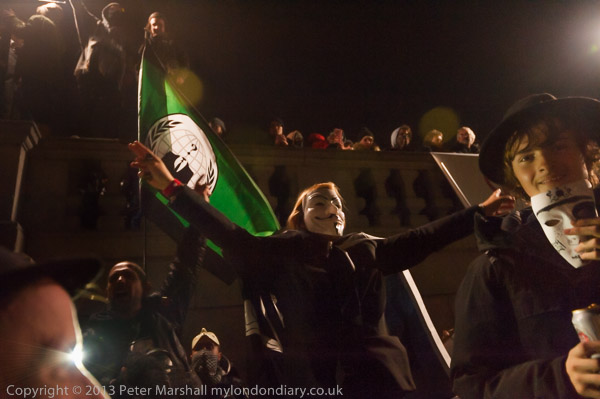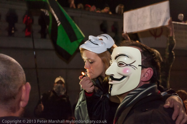 Bonfire of Austerity protesters come to join the Anon party in Parliament Square