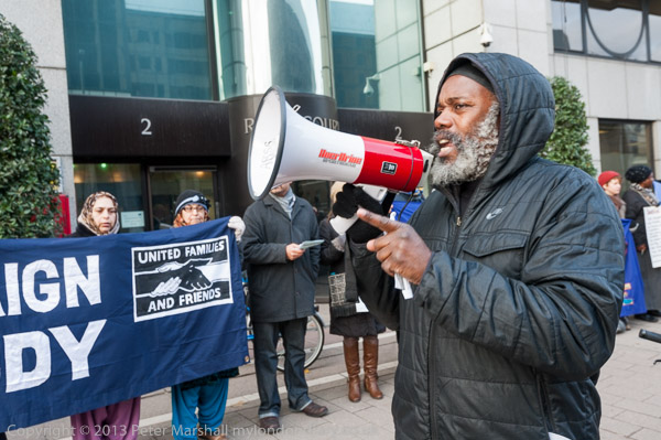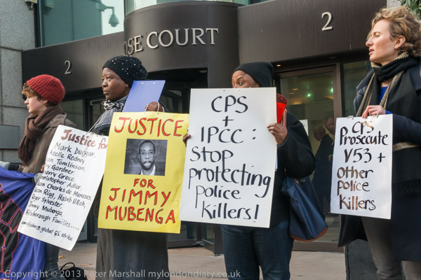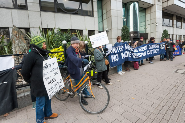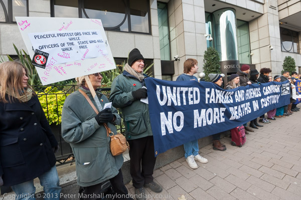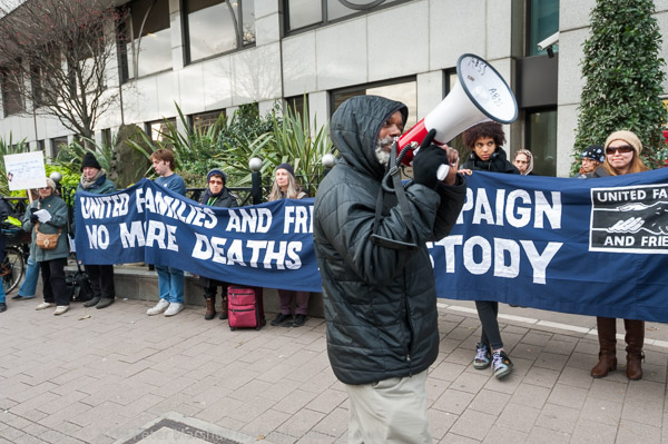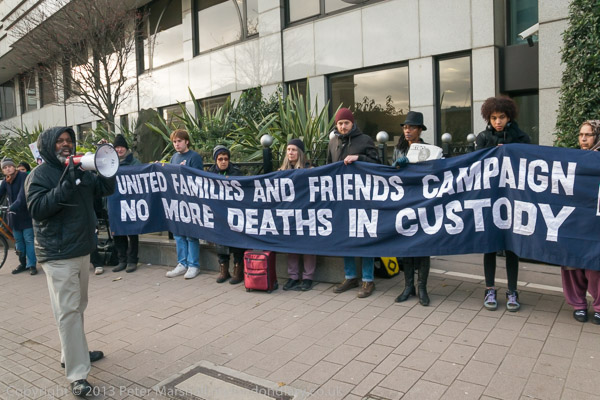 The long 'United Families and Friends Campaign' banner calls for 'No More Deaths in Custody'