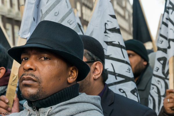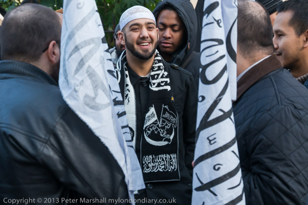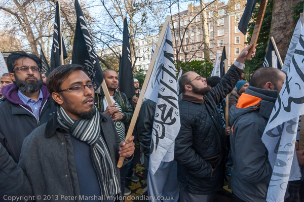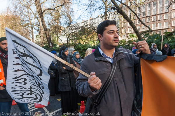 Hizb ut-Tahrir supporters came to the Pakistan High Commission and picked up the black and white flags