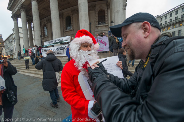Two passing Santas joined in briefly but had to be told to leave as this was a silent protest - St Martins doesn't allow anything else