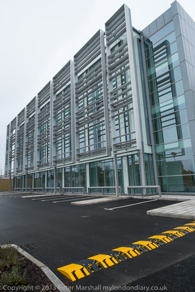 We walked along the Causeway in case there was flooding on the tow path. The offices at left are on part of the gasworks site. Water company at right