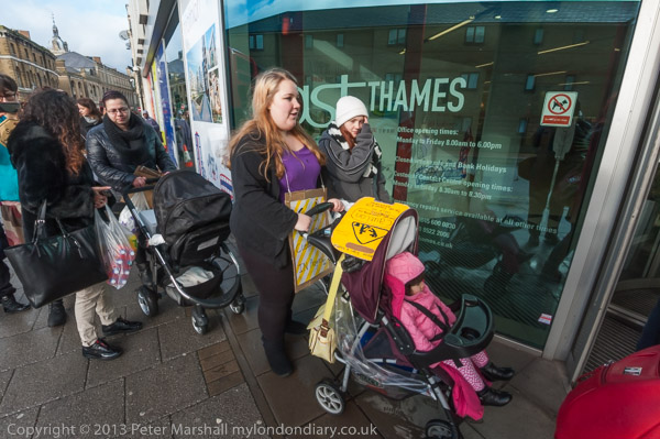 ![]() The mothers and their supporters met on a street corner close to East Thames Housing ![]() They want to be rehoused locally - not in Hastings or Birmingham which the council have suggested to some ![]() 'Caution Social Cleansing.. IN Progress!!' Most new homes in Newham are for the wealthy ![]() East Thames claims to be an 'Affordable homes provider' but says it can't provide them to rehouse these mothers ![]() who are making their way into their Foyer ![]() ![]() along with some supporters ![]() and a local press photographer who wants a group photograph ![]() which I find very boring, but take one anyway, thrihg to find a little more life in it ![]() |