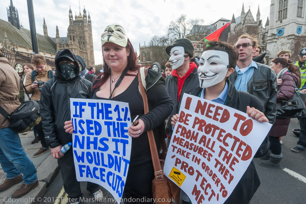 'If the 1% Used the NHS it wouldn't face cuts' and 'I need to be protected from all the measures they take in order to 'Protect' me'