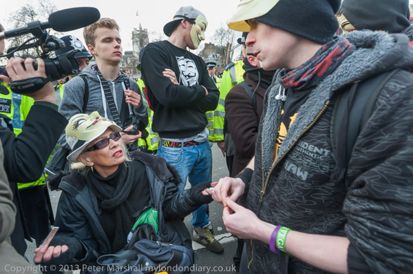 On Parliament Street police ask the marchers where they want to go, and no one is sure