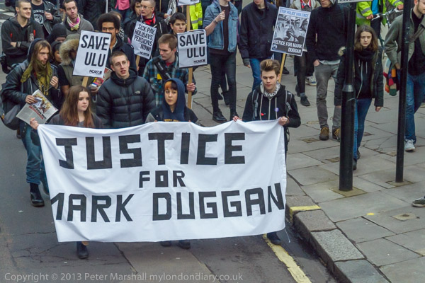 Students outside the Royal Courts of Justice call for Justice for Mark Duggan and others