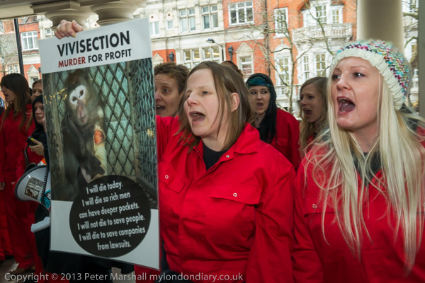 'Free the Primates' Anti Vivisection CoalitionMHRA, Victoria, London. Fri 24 Jan 2014 |
