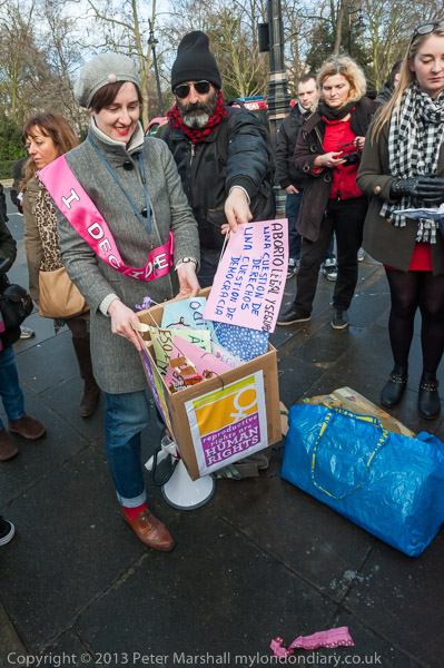 People put their bellyhangers and messages into a box to be taken to the Spanish Embassy