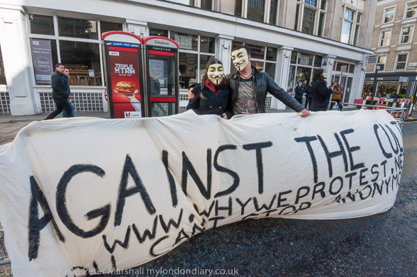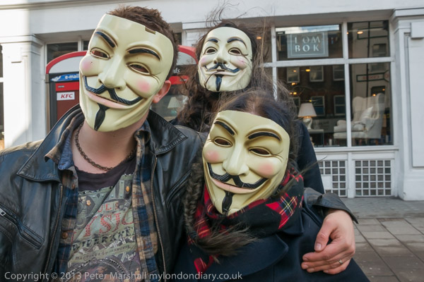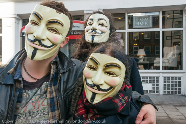in what was I think the first protest in the UK organised entirely in this way, and the first at which we saw the 'V for Vendetta'