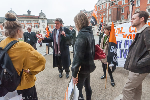 They were told they could go in to the meeting so long as they put down their banners, placards and megaphones,