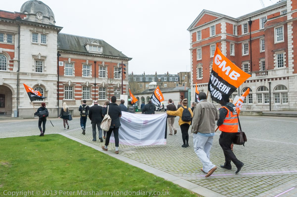 After he had left the protesters walked across the square to the building where the meeting was to be held