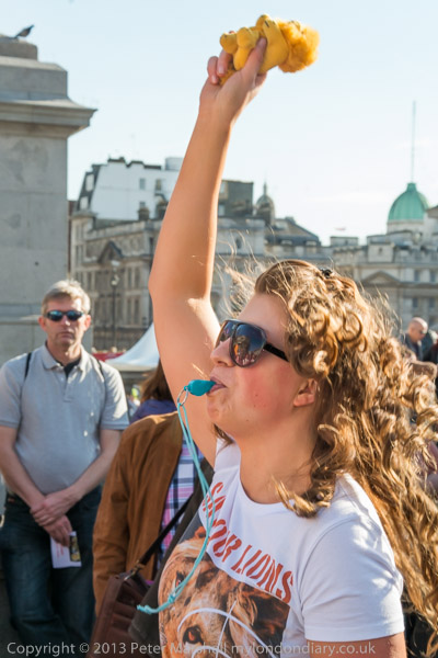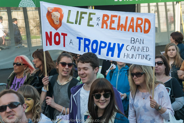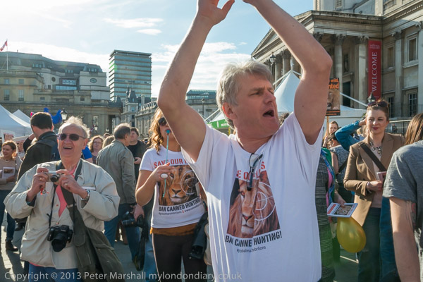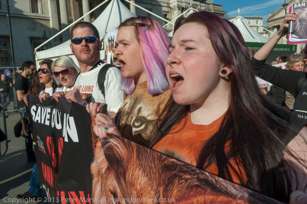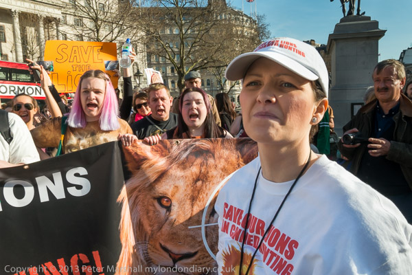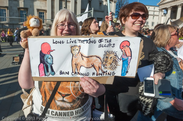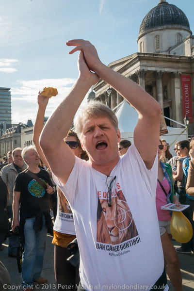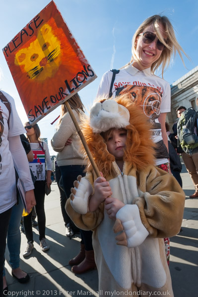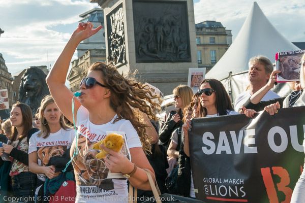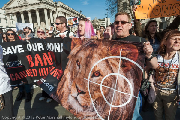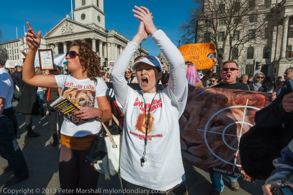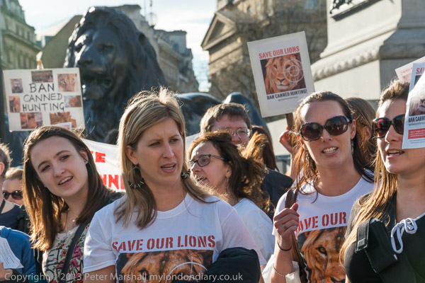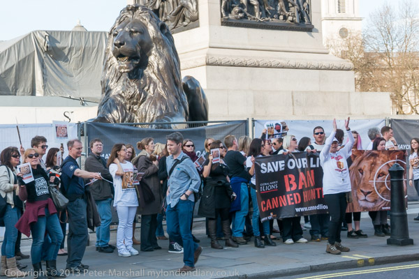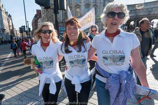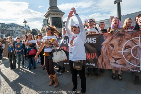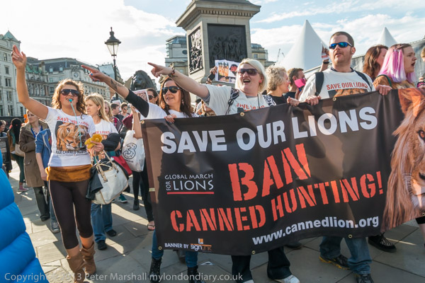 Global Heritage protesters on the 'Save Our Lions' march come into Trafalgar Square