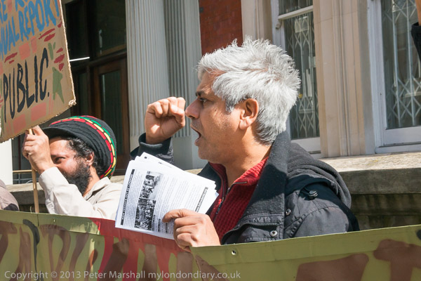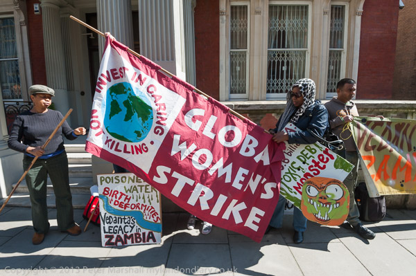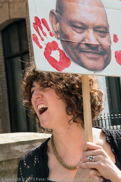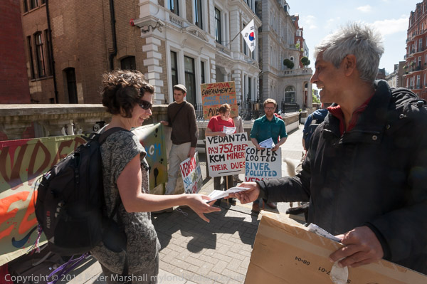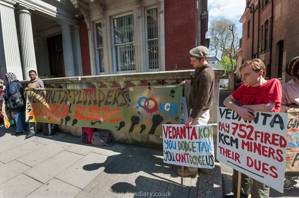 Protesters leave the entrance to the Zambian High Commission clear but protest outside