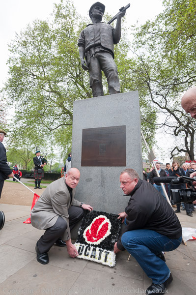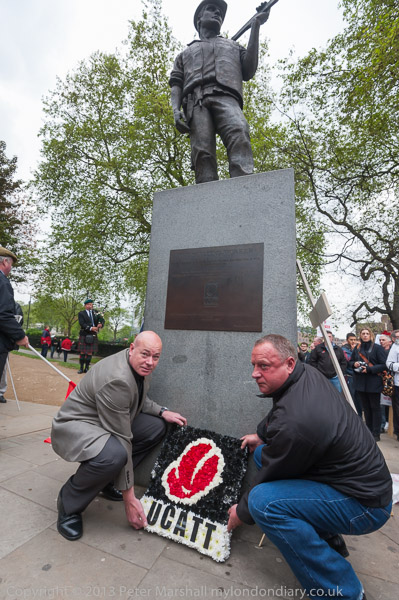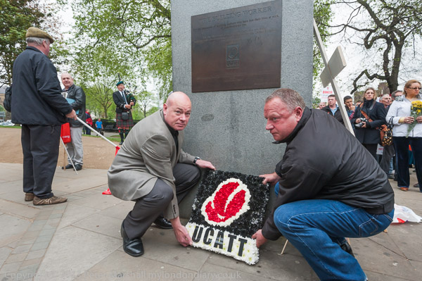 The UCATT wreath is laid at the base of the statue of the Building Worker