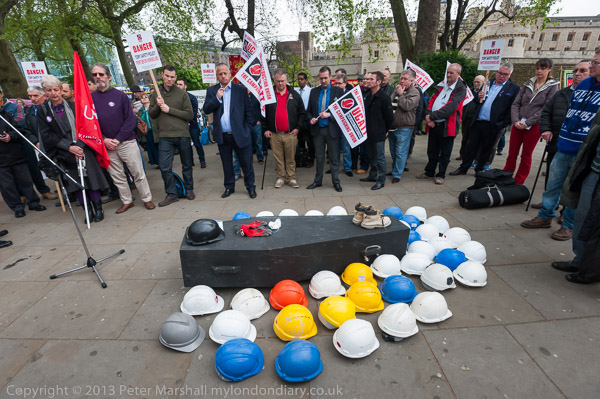 a minutes silence was observed for workers killed on buidling sites and elsewhere