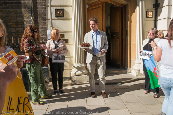Spectator Editor Fraser Nelson comes out and offers the protesters some of his birthday cake