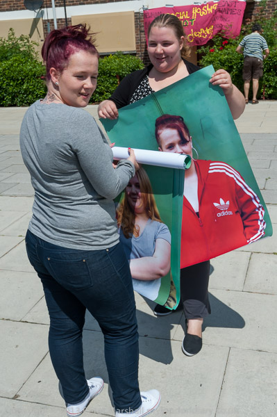 Protesters start to put up banners
