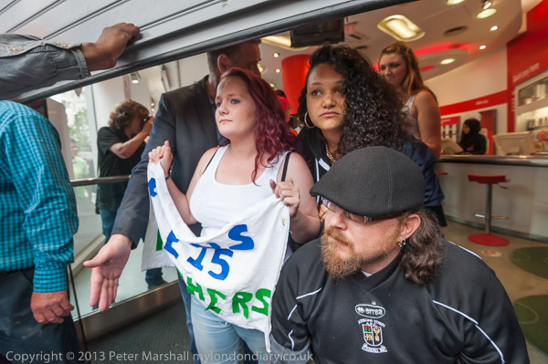 and one photographer. I'd decided not to try and get inside the shop unless most of the protesters did