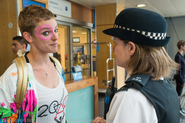 One of the police came to talk to Tamsin Omond, asking if the protesters would move out of the way