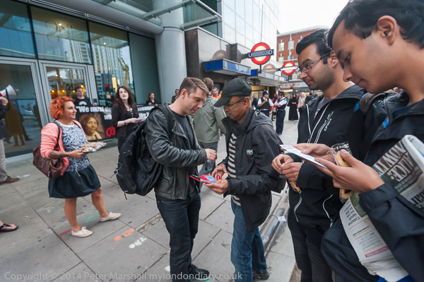 The protesters set up in front of the rich door on Aldgate High St as usual