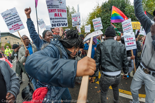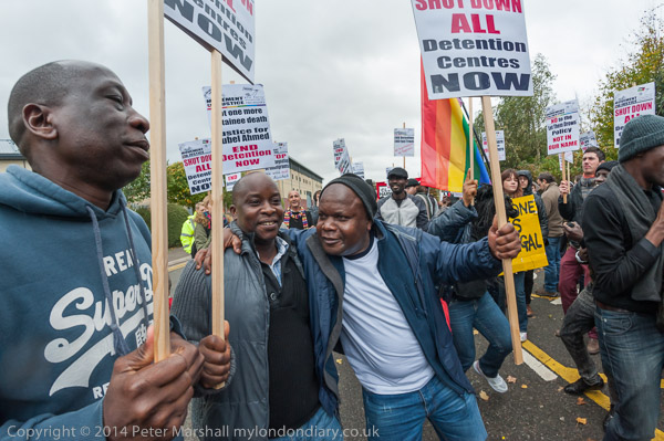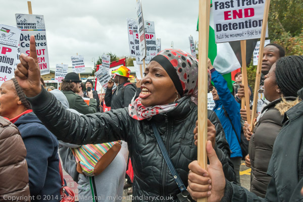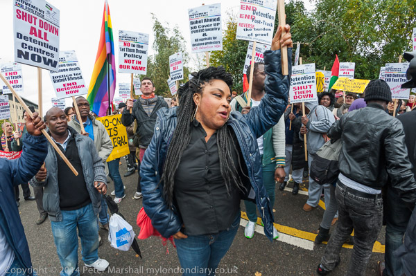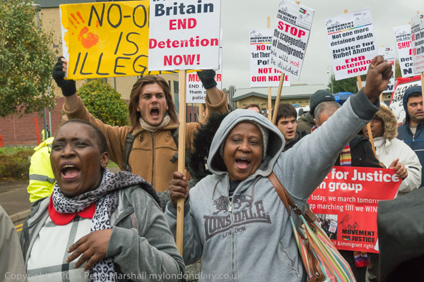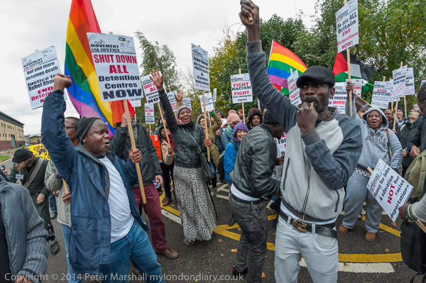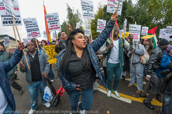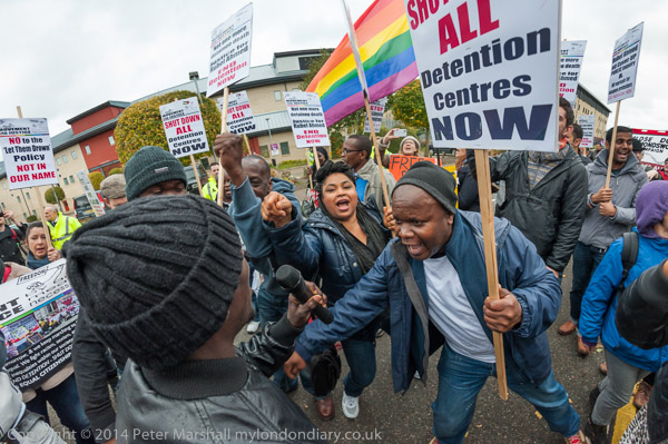 The protesters were outside the administration building - and had to shout loud to be heard by the detainees