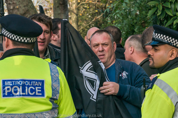 Police stop them just before the turning, just out of sight from the anti-fascists
