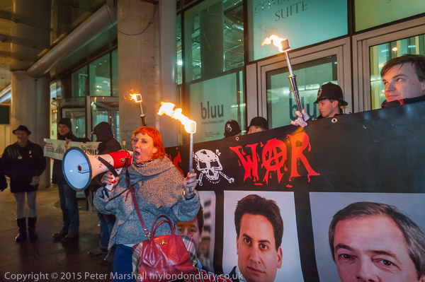 and the protest continued, with the 'Party Leaders' banner in front of the rich door, guarded by severla officers