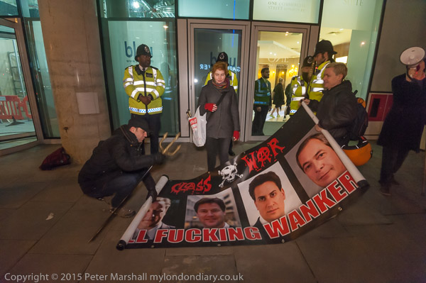 Class War brought out the 'Political Leaders' banner in front of the 'rich' door