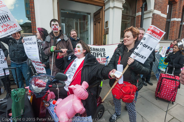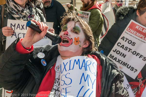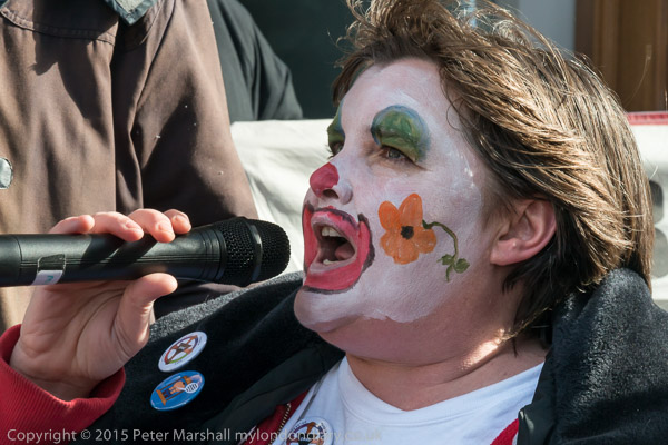 Paula Peters was one of a number of protesters withfaces painted for the circus-themed protest