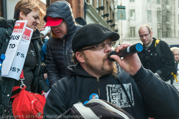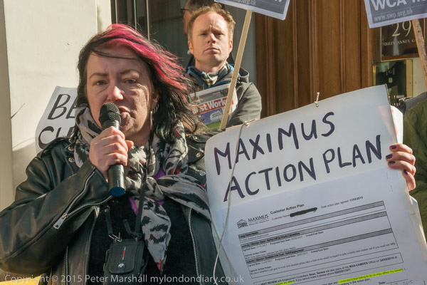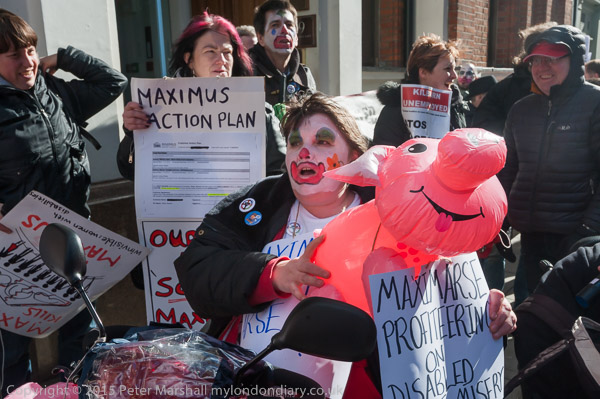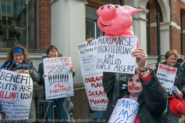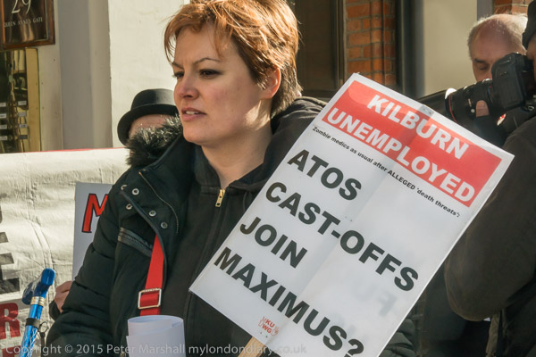 Kilburn Unemployed at the doorway to Maximus in Queen Anne's gate