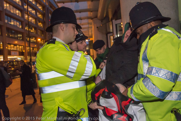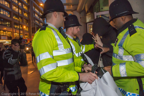And the police grab hold of the banner, trying to pull it out of the hands of those holding it