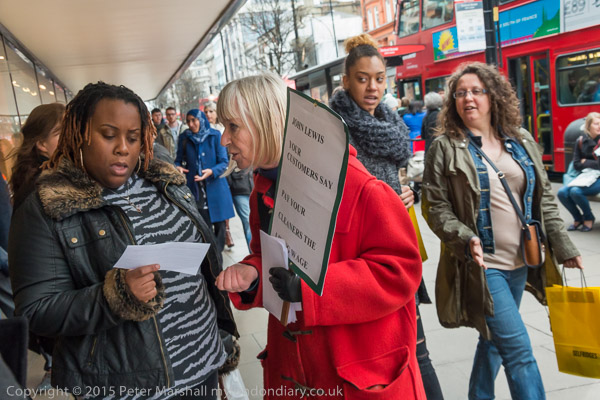 John Lewis customers were protesting to support the cleaners who are campaigning for a living wage