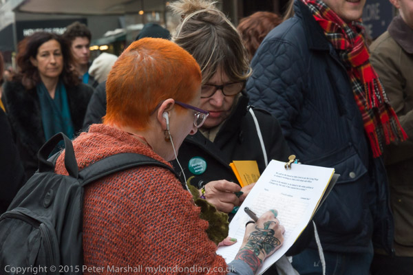 A wwoman signs the petition - now signed by over 143,000 customers of John Lewis and Waitrose