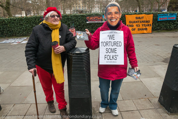 As usual there a banners on the hedge 'Chut Guantanamo - End 13 Years of Shame'