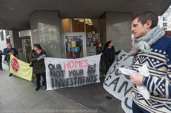 Young protesters hand out flyers about Annington Homes and Barnet Council and the evictions and