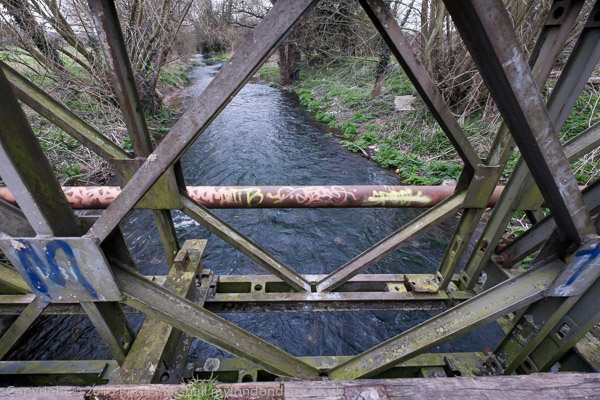 The map shows the path going over this bridge and on the east side of the river, but it is now on the west bank