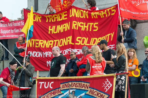 in Trafalgar Square at the TUC London May Day rally.