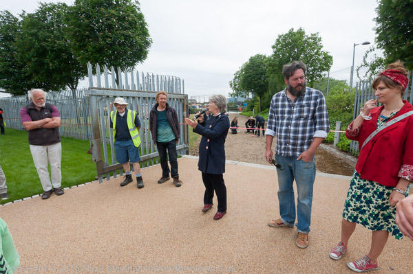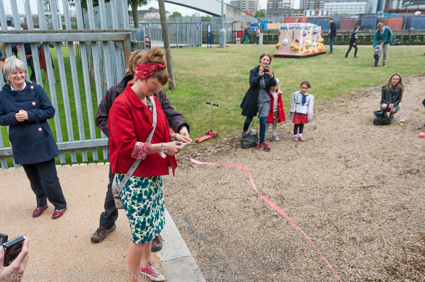and a Cody Dock volunteer snips the ribbon and 'The Line' is open