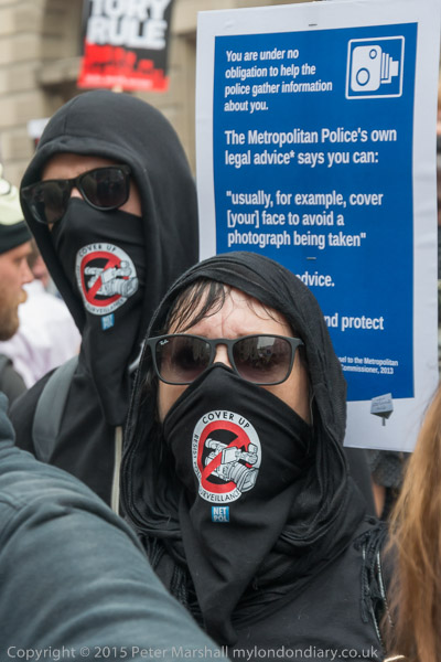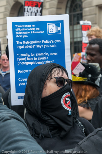 'Cover Up - Resist Police Surveillance' Network for Police Monitoring (Netpol) mask.