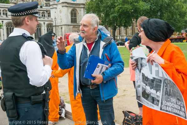 Ray Silk of the Save Shaker Aamer Campaign at the regular weekly vigil in Parliament Square on Budget Day