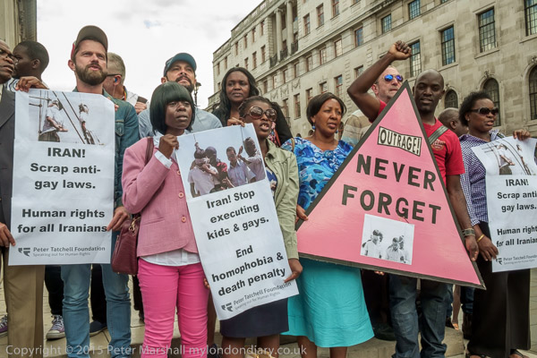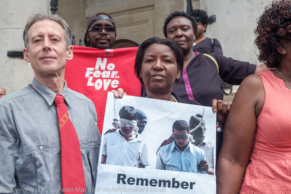 The protest was organised by the Peter Tatchell Foundation and the Out and Proud Diamond Group (African LGBTi)