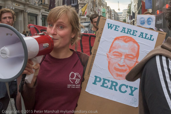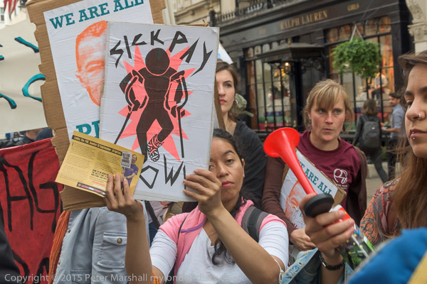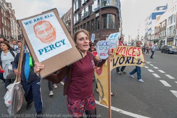 ![]() ![]() ![]() ![]() ![]() ![]() ![]() ![]() ![]() ![]() ![]() ![]() Finally, after the usual message, 'We'll bee back' that the protests will continue until the sacked workers are reinstated and the other demands are met, the protest looked about ready to end and I left. Shortly after a a large group of cyclists from Critical Mass came to join in, but I had already left. |