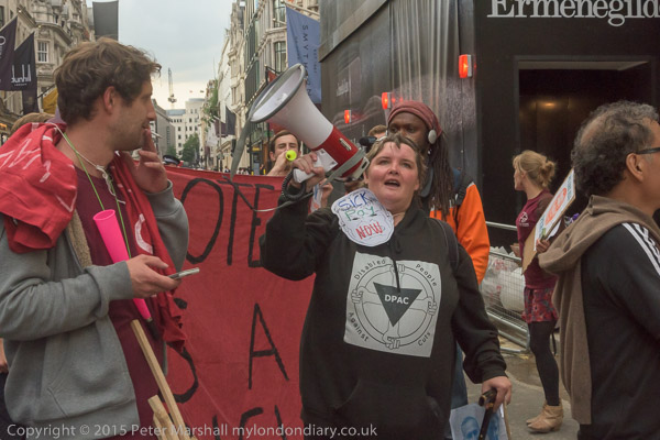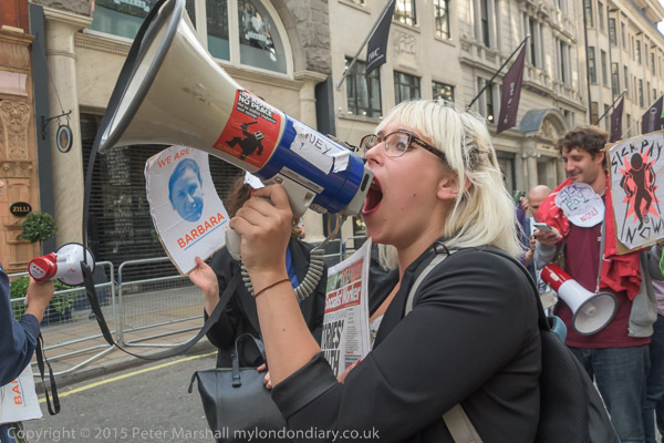 ![]() Paula Peters of DPAC speaking ![]() ![]() ![]() A UVW member who has been sacked for trade union activities at the Barbican speaks ![]() ![]() And Vera leads the protesters on a march around to the front entrance ![]() where they stand in the road facing police ![]() ![]() blocking the road and and making a lot more noise ![]() ![]() ![]() |